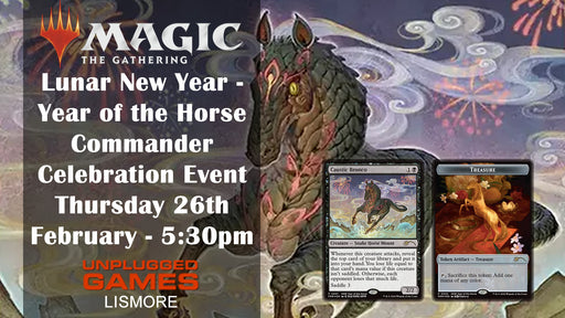 Unplugged GamesSaddle up for the Year of the Horse! When: Saturday 26th February, 5:30pm. Where: Shop 3/132 Dawson Street Lismore 2480 Format: Commander Cost: $1...