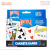 Set contains rules (including basic Canasta as well as seven popular variations) and a 108-card deck featuring Bicycle Fan Back design cards first introduced in 1894.