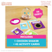 Shake the Chicken to reveal your activity, then quickly perform it before passing the Chicken Shaker to the next player. Don’t get caught holding the Chicken when the timer goes off!
