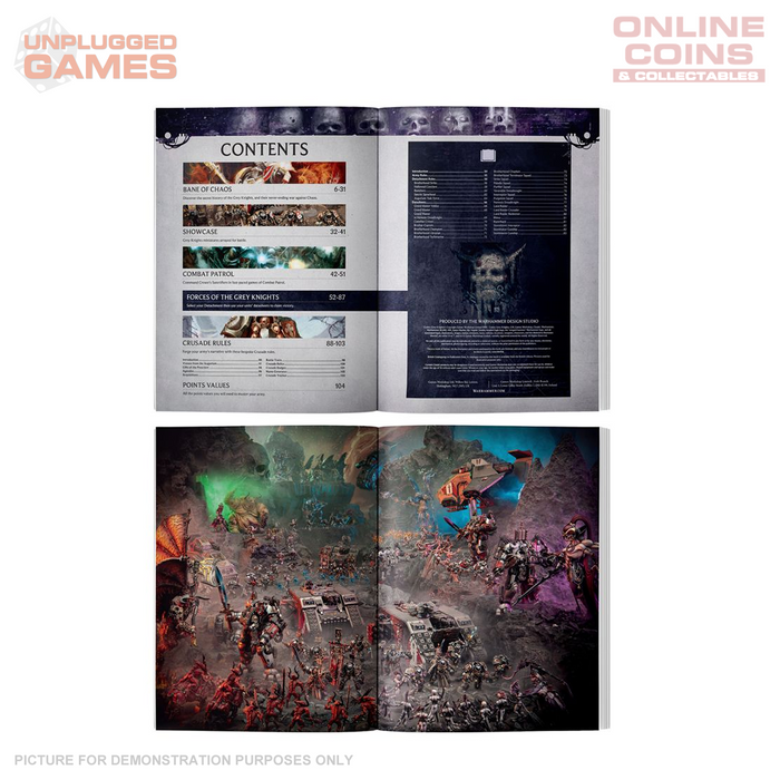 This book also contains a one-use code to unlock Codex: Grey Knights content in Warhammer 40,000: The App.