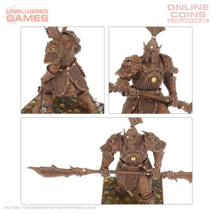 This multipart plastic kit builds one Cathayan Sentinel, a living statue for your Armies of Grand Cathay in games of Warhammer: The Old World. Tough and deadly, a single Sentinel is capable of turning the course of a battle in your favour. Use them offensively to smash through enemy lines or defensively as an anvil for your foe to break upon. Towering over regular infantry, the Cathayan Sentinel is a fine centrepiece for your collection.